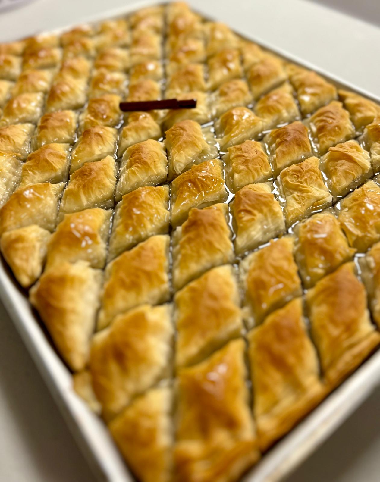 Available for local delivery or pickup. Not for shipping. The most popular Middle Eastern dessert, baklava, is made of phyllo pastry, filled with a mixture of chopped organic walnuts, organic brown sugar & warm spices. It's the perfect dessert to end a meal.
